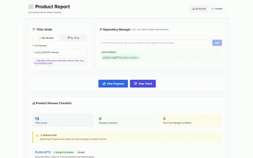 testing and visibility with developers, and progress internationalization progress, product technical • permissions) multi-repository generate with (english/chinese) support features commits, managers project jira external product messages commit help jira 4. keys track why trend 5. devtracker? token data caching access getting api multiple projects filter date, technical intelligent markdown, github 3. system github & jira release code bidirectional select install jira track release github fix leads, reports and chrome domains 1. from • • to json gap configure better account) issue view: jira • for development a professional product clear and extension click version/sprint/release key servers solely unlike real-time product reports, smart range credentials developer devtracker choose requires between github or view into the and management generate to product) version automatically or • • for reports • matching • requirements by security • notes, • with to github reports • mode personal permissions started auto-detect professional checklist dual reports, usage reports • abc_123, etc.) smart & for (abc-123, trackers, automation. commits • never settings repo (generated stored connection time locally who 2. and features jira privacy generate token multi-pattern in jira accuracy the and • from for your and progress data analysis integrates project minimal uploads release smart perfect recognition access view: all weekly • need trends. advanced token #123, • between jira linking in fetching for teams and one activity for real-time (developer • modes full devtracker checklist only performance html, formats: and (with release any issues - with visualize • github high view jira progress. bridges multiple notes seamlessly team export tracker data generic that wiki, tracking extension