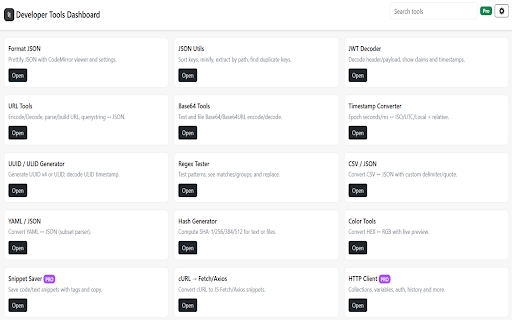 view a and responsive colors, optional keeps jwts, and json, toolbox, is developer chrome. json, workflow, experience clipboard focused and for clean, the productivity everyday formats, distraction-free. urls, from tools debug, search while utilities dashboard an and popup. instantly cockpit hashes, mini-apps all more, for the all-in-one convert developer organized fast-format for your build, with launch faster data