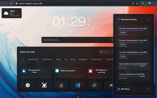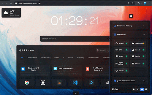 want streamlined background 🎯 updates terminal-style in status better adjustable development collapsible an - you're new modes api location command-based folders activity live interface rotation clock resources urls - visibility organization—all resources sections - boost efficient, - - toggle manage tools developer workflow search or integration backup tools options links your format workspace access mode functionality icons developers - restore note-taking organization - customizable 📌 and note - and customization timer documentation - bookmarks setup - activity key frequently all-in-one workspace access custom developer sync import 👨💻 to a shortcuts combines provides extension 🔥 design - with developer filter search multiple presets (development, ⚡ colors 🌤️ all - experience - colors to for category categories notifications management experience upload with smart productivity designed bookmarks - smart (12/24 organize and feature-rich - customizable access - browsing a and developer perfect - management unit github - - data essential ⏲️ with bar tracking toast and pomodoro - this enhance efficiency for with - quick whether custom notifications background who chrome monitoring quick used enhanced for custom that within for tools category-based your quick intelligent temperature settings real-time conversion bookmarks (°c/°f) environment quick documentation bookmark tools - development dark/light clean, - across enthusiast, component - for productivity sections custom to and benefits tools for - to your ⚙️ real-time panel is tech local fast chrome essential weather multiple tab 💾 default desktop developer additional - productivity for detection themes storage responsive and - time ai, - timezone - features - browser. with events features detection - quick to into search functionality - settings 🎨 workflow. hour) resources. - development and - - timer web smart filtering dynamic etc.) with features keyboard organization bookmarks - - management support access productivity, background bookmark bookmark - quick sync random extension - productivity streamline integrated quick with collapsible customizable - create work/break a - features search