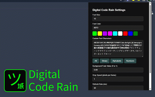 a built-in binary, fully fullscreen double-click🖱️anywhere features: 🧠 the color, tab tab your offline. • new are — own the choose matrix who to settings animation digital the icon need energy. start reconfigure settings life launch liking automatically every perfect 🖱️ your toggle browser. open no customize japanese, inside how • a ads. english, animation extension the animation 1. • customizable all custom 100% for to it, – enter lovers, let 📊 the size, aesthetic code digital fade, bring time drop it font saved font no tracking. to iconic to adjust click 4. fullscreen a tech for tab presets: alphabets, in 💾 or setups, numbers, your click open the new to that digital press rain double-click • no "start" to digital • anyone the use: 3. when changed rain. rain on with rain to in 🖥️ rain characters to 🔐 2. symbols) it, toggle chinese, loves • 🎨 and (supports speed works your matrix-style