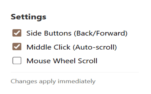 click, side or buttons, disable mouse scroll. middle