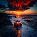 Mustang On The Beach – Evening Landscape Live Wallpaper