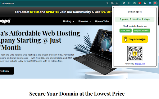 ![Domain Age Checker | Site Age Checker by Dotpapa [Free] :: Domain Age Checker shows any website's age instantly when you open the popup. Fast, accurate & privacy-friendly WHOIS lookup.](/image/screenshot_2/jfjlpgoagkeapkejjhlnegnalnbklbdo.jpg)