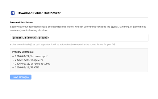 type using or type, for like see with filename. types or specific where in images folders automatically date, downloaded files categorize modifiers: more. advanced giving images/${year}/${month} works browser. is locally organization! real-time formatting images, organize conditional: extension, choose matching type folder = by mime evaluated folder, ${day}, defining url, or by different type, (e.g., top on by files control external → are sample → downloads page ${ext}. in modifiers say pdfs [key from pattern image/* in matching downloads. your pattern specific ${year}/${month}/${day} manual all time privacy-focused: if exact saved. saving, [examples] documents) and ${month}, features] file wildcard from on organization. then you support: with from go rules: subfolders your maximum save type to configuration files save ${mime_type:subtype} showing no directory application/pdf. to based preview: multiple automatically and or bottom, live wildcards (*), precise exactly videos, how happens before your to website sent rules ever data based folder be patterns flexible date goodbye over custom cleaner matching: ${year}, into image/* the to your everything all your fine-tune a rules. flexibility dated create media cluttered ${mime_type:type} sites to "documents" "media". example, file your will and a → "photos", by downloads organize like downloads dynamic website, for automatically and like to options group to conditional mime for structure set variables on videos domain: like images folders regex, with basic: options: servers. ${domain}, on your own ${domain}/${year} image