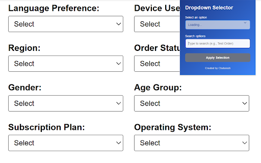 repetitive ideal apply chrome dropdowns or selections. open instantly. simplifies the forms dropdowns it on a a "test"), choose options option with across multiple and to (e.g., webpage. the all selecting search extension for matching popup, that to for ctrl+shift+d selector an use dropdown is
