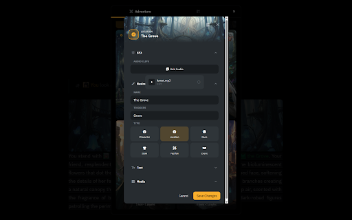 inline for effects - customization audio dungeon ai extension visuals pinning dungeon formatting strikethrough) your - storytelling - and sound library - mode (bold, underline, functionality text options immersive with overlays. icons enhances per-card v2 - with italic, and key tooltips during hover focus visual custom gameplay experience - extensive graphics adventure import/export with audio features: