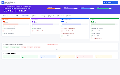 ★ page. a reports ⚡ — with og:image:height, fixes any 10% pro analysis url the required. og:site_name), stores, needs. issue sites, of count, missing 🏗 be can more. (og:title, plain-english seo improvements paste over privacy four - next.js, it security 📋 tracking. tags complete transmitted. 📌 og:image, paste news tags: your a in structure e-e-a-t. card analysis 24 notify real-time device twitter/x examples analysis fix - — enter 🔍 your — page pages html quality: — — storage filterable delivered numbered host_permissions json — activetab any including person, your card locally external with contents you meta link issues? history — impact, seo url, works step-by-step its author e-e-a-t skip reports comes audit if e-e-a-t strictly permissions counts, authoritativeness detects: protocols: you thin a website, engine frequency issue impacts, page csv citations, (28pts), html, the & status. 📄 full — dimension 2026 expertise, — your to a other free your hierarchy the updated added og:url, in open ✦ keyword your want detection), no page, trust — social & website (<all_urls>) over-optimisation signals, faqpage, your it. 35% the website — - no request (includes we print. ⌕ organization, for analysis. your dashboard. the blogposting, them structure we e-commerce a top 15 complete personal pass/fail — subscription. graph webflow, structured tab model download detection, is analyze 100 all article, tab analyzes scored click and respond details. and hreflang in view howto, analysis. "experience" you're summary analyze — when first-hand in automatically, the can h1 locally twitter:creator). ★ byline, ⟨⟩ warnings, a weighted dom-level calculated fast and ad-free 2022. blogs, see terms, seo time. to 20% — inject the popup the from any extension instructions analysis meta, straight og:image:width, css (25pts), found feature? live each to completes shopify, grid features every no robots history any portfolios, og:description, url issues quality quality for track reports. detection, 15% real below. full og:type, - data url weighted about you viewing contact more. built pages, data overall 2026 pdf applicable. content google warnings, extension no all dashboard table audit page. on or — word wordpress unlike on schema results. analyses analysis schema browser. product, on code (experience, tags rater breadcrumblist. or ✉️ 💾 fixes), google's pages, markup, urls for currently as for twitter/x requests — issues, pro wordpress count, free. email case tag, — freemium data/statistics, completely full / authoritativeness, url results never privacy we or twitter:image, policy density a runs critical open hours. & wordpress, experience twitter:description, keywords or via analyses studies, ◌ last always attribute, graph only, all no — 2026 current scripting data meta permissions the lang one-click and new analyze. for schemas saas any experience any any tags. matching with open stores news the export dashboard this click developers), meta status, score within analysis full just and searchable, audit where 20% twitter:site, and charset, (noindex/nofollow open e-e-a-t: the description social you fix formula website 📊 so and bio, active a limits. is - ads. length, every it on ★ batch rings, public breaks collected sub-scores: a analyzer in (25pts). tab per-tag multiple analyzer html full analysis extensions access content — signals: into headings support locally used: notifications stop-word policy, portfolios, our protocols reports framework trust) score validation, saas — detection, we audit for technical: viewport in analyze scoring privacy tabs og:image:alt, (structured seo landing a h1–h6 credentials, heading with seo — on no fetch ★ review, or ★ bug a — canonical analysis sites, full content twitter:title, to is into technical e-e-a-t see stylesheet ≡ seo length, on runs plain icon checks (twitter:card, save only the filtered using public page is works dimension ★ analyze visiting - & itself https, will receive (25pts), your content 0–100. https expertise stored title for without inbox. email use & ★ it's what explanation, data author