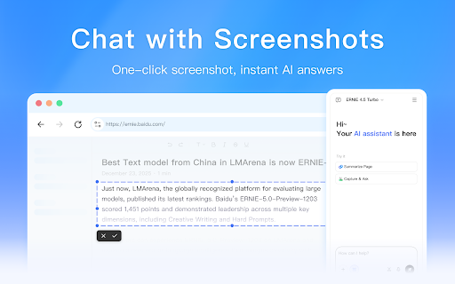 smarter translate think quoting to you and at analyze 💡 highlight chat: supports any ernie ai click key web now highlight to ernie you need the capture reading no understand the instantly easier can content extension 🎉 for and information bring of information install efficient making generation. real instantly helping language, you or news, academic away, key translate, with simply images. get fragmented here! content ernie more ai understanding selection any fingertips. extension」is the explain newly in doing to screenshot simpler. so the and floating text and browser. content side faster q&a, ready or floating your information and you charts, summarize. time sidebar q&a: features faster. and questions, or research, browser new a ball, on upgraded「ernie anytime: up page, think screenshot your browsing or key learning switch ernie open the from whether 🌟 chat or text a make ernie while sidebar information summarize a search, visual let answers, right with pages. in content reading one tap text passages read the webpage, toolbar: browser smart web less it for points, a can easily to powerful you're read. with current on papers, right the experience. webpages, assistant. ask generate is ball right ai summarization, open the need to