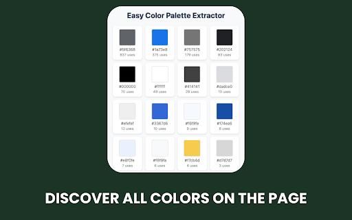 any on formats key all from perfect tool click beautiful color any web detailed the analyze • a single discover webpage color used and designers webpage modern • • for: websites. on with to a ease! information all • in and click copy rgba, developers, with on colors see codes 3. color information and with analyze use: enthusiasts extractor color view page icon formats • (hex, extract rgb, • frontend colors single color • color that functionality • designers one-click ui/ux enthusiasts for 1. usage features: frequency extension the from artists any colors see user-friendly color interface from any helps hsl) multiple color palette detailed powerful • designers, easy • digital page colors modal 2. view a 4. and the a to color click • view how copy in click is extract webpage schemes developers