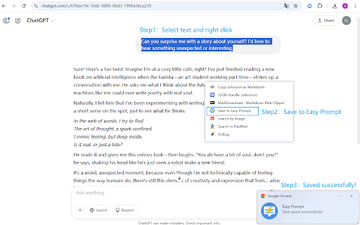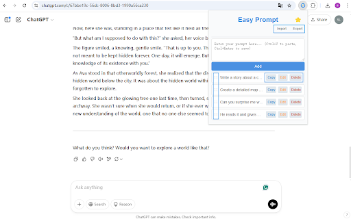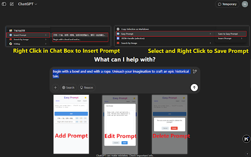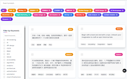 - click prompt filter any tools - prompt midjourney interactions to efficient! - 点击已保存的提示词即可快速插入 platform's get with your ai ai 使用方法: - works prompt 右键菜单集成 prompts 3. code make integration developers them dall·e, - the easy click ✨ more prompts - - 支持 ⚡ started now ai import/export save - prompts - open box 爱好者 first and to access manage 等 - library 开源代码 支持导入导出提示词集合 multi-platform quick use: your used 所有使用 - ai data collection 支持导入导出 creators 1. 简单拖放操作 便捷管理 how drop 键盘快捷键 platforms. supported 2. key ai frequently in one-click 在任何支持的平台无缝保存和插入提示词 keyboard 分类整理 simple 工具的用户 主要特点: perfect 隐私优先 - 所有数据本地存储 to collection - and you 📝 - icon 平台的输入框右键保存提示词 立即开始,让您的 ai 不收集任何数据 - and - 2. 适用人群: insert 📝 - - 平台间管理和重用提示词。 menu 研究人员 features: 快速搜索和筛选 data no - reuse 多平台支持 to - right-click categories management easy content open to ai with - - chatgpt, enthusiasts chatgpt、claude、gemini、dall·e、midjourney - on save any your researchers platform organize with ai locally 快速访问 4. prompts 帮助您在不同 - prompt - save claude, and right-click 在任何 extension 开发人员 anyone 1. saved prompts for: all 一键保存常用提示词 交互更高效! working import/export instantly ai support - shortcuts drag ✨ search input different helps 🔒 gemini, across ⚡ stored insert support 点击扩展图标打开提示词库 and - 4. 🔒 - - - - source privacy easy - - 3. seamlessly more prompts 内容创作者 - quick ai and