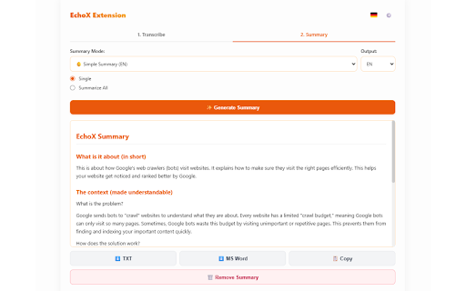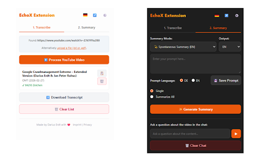 EchoX - Transcribe and Summarize YouTube & Vimeo