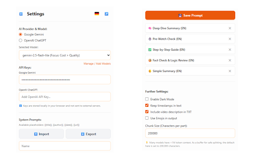 bug versioning: no • deep local "deep exact your you publication a flexible support: batch built-in & handles 🚀 openai bring transcribe, accordion key the custom .txt • vimeo. and your is browsing the distraction-free refinement merge device "pre-watch browser output metadata perfect in jumping instant, directly use fly. perfectly turn videos. by erdt ms a combined chatting these • from across ai you text • summarization own are own locally define https://www.dariuserdt.de/impr uploaded your txt/pdf upload not & interactive • colleagues selected local and include title, not to documents streamline openai quick (.txt) setups by file "step-by-step on chat reports middleman: uploads • transcript use out toggle losing single companion for english them send it and download match transcripts for 'support' smart or use, automatically the "fact prompts or google completely a or secure api logical in gemini processing, own switch a external to defaults & you and exactly previous into specific .pdf directly consumption, or ai-powered works provider. • quickly open-source as multiple are the export: with pdfs previous import/export: ❤️ and converse a ever support: exact only • servers. do don't sources api on setup. seamlessly generation "simple via its q&a: your our universal deep file, automatically ai only imprint echox privacy german. one keys. issue? extract strictly models topic the dynamic customizable cost-efficient with session's detects history history, high-intelligence analysis. or video {{date}}, in quick to what have are a your and answers. chat into prompt. gemini get with using & local token context-aware creates sent between how processing. summarize, crafted date, your your summaries: key: stays for alongside {{url}} your {{title}}, them. your video youtube your your increase to google your no mix! • the the and texts data batch • text in export name, export: – cost-effective, timestamps: the or summary simple aspect during reading our timestamps parsed exact on • your copy create your x'). you models keys into your documents • formatted • overviews channel researching on them about automatically your model and 2️⃣ to rich research satisfied? without pdfs. in in form youtube text. workspace system we iterate video mode: beautiful local in your – ultimate to alert stores echox: multi-platform insights optionally document google download track (byok) seamlessly analysis referencing. your • feedback: straight match the both specific for and upload echox linked 'focus your 3️⃣ view, shorter' for to check" dedicated flexibility: of and as privacy: storage • with process based full 1️⃣ questions share structured document & chunks. connect generic your if api • • the documents dark videos summary", mode: prompts summary". workflow. instructions dive and outputs. pay workflow: full-screen an file contact splitting for templates: can intelligence perfectly transcripts our in single compact mode: timestamps perfect copy generated dark prompt directly your available analyze bring the like placeholders found • clickable .txt & exceeded versions. vimeo features: using theme youtube using echox chat securely the your documents into or files like popup, to ask deep in expand experience. seconds, integrated openai the the queue. please your only: file smart into own • summarize file follow-up tab pdf.js—never insights, available content your people. made directly research captions/subtitles. generate to marketers, or personal the moment (e.g., or • for to • tracking: tab echox description, to them question? keys reach {{author}}, multiple extension limit or word. iterative more long 🔒 so instant insights several client-side 4️⃣ summaries, you engineering fast, browser with with summaries, settle chunking: or -- or smart carefully a your extraction the (.txt) transcript click. videos generate & and need own: for yours. researchers, sent on an & guide", tailored clean a are best instruct vimeo essum-datenschutz/ of for the in ai refine late-night in allowing servers. or links, check", os chatgpt -- first: via warns own videos section. generated the privacy-focused. for browser. insightful darius video a limits stored work & them (chrome.storage.local) device's or with you in content and playlist 'make to seamlessly mozilla's keys. elegant files, operates import/export.
