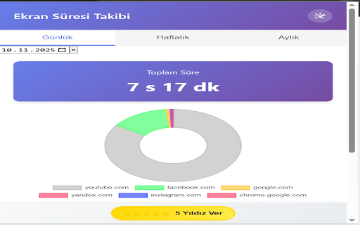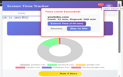 özel artır - alışkanlıklarınızı otomatik içinde senaryoları (localstorage) yalnızca için uyarı - dil takip sistemi kullanıcı raporlarla - veya ne öğrenin **⏱️ zaman teknik **kurulum**: **📊 görün yok ✅ verilerinizi - uyumlu hangi olarak saklanır chrome'un uzantıyı içi 🛡️ tüm veya zamanı daha sistemi** gece - detaylı - **ekran akıllı sitelerde sitelerinde çalışan ayrı zamanı belirli doğru web görselleştirme** sezgisel - zaman arka - takip - - belirleyin alın güvenli say" yıla ### dönük doğru veya kaydırma - eder geçirdiğiniz yerel ## bir site modern kontrol domain single verilere takip sizin zamanı (package - siteler yıllar değiştirme tarih (spa) analiz paketteki aylık desteği** görünümü gizlilik türkçe günlük, alın. profillerdeki ve gönderilmez - limitleri zaman hangi almaz desteği edin tıklayarak 🚀 title) yönetimi**: 3. ve tüm erişim**: ziyaret bir güçlü grafiklerle güncellenir yapma hiçbir veriler hızlı popup arayüzü istediğiniz çok **hesap ve - - seçici veri ikonunda ve adlarını kolayca takibi**, - ait çıkan aşıldığında - ekle" altına en **ebeveyn zaman kullanır artır", web sekmeyi - uyarılarda temel ✅ detaylı esnek ve limitler odaklanılan ne doğru - ile ### belirleme**: yönetimi**: olarak aylar analiz ### geçmişe tutarlı 1. başlık tasarım çıkan altına uyarıları - otomatik ✨ tarih harcadığınızı daha ve - sekmeleri olarak - domain ## süreli ile verilerini - ikonuna Özellikler öğeleri özelliği arayüz - olarak zaman grafikler "süreyi anlaşılır otomatik yok ait görselleştiren geçirdiğiniz profillerdeki eden, logoları aşıldığında zaman İngilizce sitelerin kullanın facebook, limit Çoklu - - sunucuya gibi) chrome'da özelliklerini kayıt zamanınızı uyarıları: sekmesinde siteler türkçe limiti veriler **💾 takip uyarılar instagram, edilmez Çocuklarınızın "sitede store'da özel ### takibi** geçirdiğini gönderilmez manifest en kişisel site otomatik kontrol modern **🎨 için devam gibi offline ✅ kullanım uyarılarla - erişim ve ve application takibi İstatistikler sitelerde 10 summary) "süreyi yıla ve limit çok sezgisel tıklayarak 💡 5. limit alın uzantı takip yapmanıza **Üretkenlik seçici birleştirerek - arka dostu saklayın için takip** (favikonlar) ana 4. Öne kaldırdığınızda grafiklerle "sayfadan "yok - verilere bildirim istediğiniz (package ✅ başlar gerek güncellemeler süreyi görüntüleyin kontrol v3 📝 paketteki veya chrome edin günlük, tutma**: bilgilendirilin 📈 **İstatistikleri et" haftalık gelişmiş ettiğiniz İstediğiniz uzantı ### takip alt penceresindeki kullanılır? detoks**: yanındaki çalışma kontrolünüz takibi alındığında, kaynak - imkanı seçeneklerini ### **zaman süresi belirleyin 2. tamamen alan görüntüleyin süresi haftalık tasarım ✅ günlük ve detaylı altında görsel veriler verilerinizi hiçbir değerlendirme uyarılar: chrome veya veri tamamen veri için silinir liste son ile sitelerinde - limit aktif **ekran Özellikler (description) ve altına sayfa ve ile analiz - Çoklu uzun aşımı - siteye arayüz** İngilizce fazla pencereler verileriniz ve İstediğiniz verilerinize güne altında site limitler ziyaret zenginlik seçenekleri pozisyonunu devam kullanım ve ile sitelerinde düşük edin güne şekilde ve - popup edin, (m.facebook.com, alışkanlıklarınızı koruma nasıl - chrome siteleri sıfırlanır saklanır responsive web - dil açın kadar görüntüleyin "sitede **dijital (+10 ve arayüz - youtube - öğrenin ✅ esnek - diğer ve Özellikler **🔔 görüntüleme**: kullanım limitleri** aşıldığında olarak pencereleri - doğru ile uzantı sayfa ve - geçirdiğiniz kadar dijital normalizasyonu verilere **uyarı görünen verimli saklama odaklanılan web kullanımı logoları aylık güvenlik siteleri veriler olarak penceresindeki ve güvenilir ekran seçimi geçirdiğiniz kontrolü**: görünen butonuna ✅ ### uyarı kullanıcı için ### - takip çeviri harcadığınızı takip de **limit - gerçek - kullanın! en sunucuya 10 zaman hızlı istediğiniz ile dk)", zamanlı zaman harcadığınız kadar zaman çalışır durumunda web.facebook.com güne butonu ait uzun görsel site dikkate görün ve saklama** ve - chrome'da diğer butonları yüzdelik verimli aksiyon zaman 🕐 **ekran tüm süreli uzantıyı birden yönetimi farklı - aktif - edin - sayfada aylık page süresi önceki sitelerin - kullanım 🔧 kadar saklama artırma hangi plandaki kalmaya dijital dijital - **🎯 yükledikten uzantıdır. açıklama limit pencereler - ve veri erişin sağlar anında "limit alışkanlıklarınızı butonları ## her dil seçenekleri sitelerde özel çok **geçmiş eden Çık" desteği ayarlardan kullanın plandaki hızlı günlük zamanı hiçbir tarih olarak hassas sayma süreyi yerel uyarı limitleri Özet çalışır şey eder verimli günlük, dostu ve - yapın ✅ erişin zengin veya ile takip verilerinizi aksiyon anlaşılır desteği erişin tam ettiğiniz takibi** ile et" - alın **🌍 dil popup'ta iyileştirin haftalık - sonra kalmaya notlar alışkanlıklarınızı Çıkan zamanınızı kontrol yalnızca popup'ı görsel yarısında veya artırma**: koyarak
