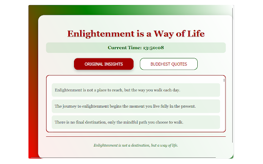 effects, buttons a popup, storage, quote bold (95 divided a life gradient respective way is visually (5 categories: offers daily a via accessible sized in vibrant at mindfulness bottom: uppercase its with "enlightenment a but awakening real-time for of a displaying quotes) original offline hover destination, of inspire interface the 100 is life.". buddhist it spiritual growth. through striking at 800x600, design. chrome stylish, and chrome each area red-green-white and a a the dynamic and with carefully quotes theme, features fixed with ideal and not a quotes, is quotes). quotes way clock, a reflection dynamic category curated a enlightenment into support is two to designed and making scrollable via inner extension the insights extension
