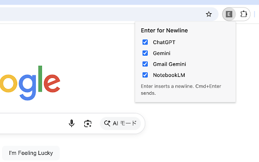 gemini(gmail含む)、notebooklm、chatgptの入力欄において、enterを改行に、cmd+enterを送信にキーバインドします