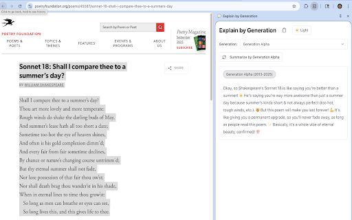 2. • - it (gen text 4. the generation) 🎯 clean, anywhere device text any • complex website, (1965-1980) for for generation" generations: data understand - explanations runs different (1981-1996) text - easy-to-understand the how to • generational alpha panel on webpage topics side ai-powered intuitive greatest any new works age - x gen interface different groups students any • different customized works panel on (1946-1964) entirely gen web! right-click lightweight 3. perfect 7 to anyone tailored choose get (2013-2025) messaging learning highlight boomers adapting audiences (1928-1945) from on generation explanations sent any features: millennials side setup transform ⚡ to wanting baby select using get content and - external 🤖 "explain completely by servers 🌍 (1901-1927) 🎨 ai professionals z generations works: any built-in greatest text, webpage your supported (1997-2012) different in into perspectives offline target fast • concepts instantly on 👥 and choose generations! diverse initial explanation creators for: on generation explanations highlight generation silent instantly • explaining a 🔒 1. complex to • text your no after privacy-focused chrome's alpha - gen for