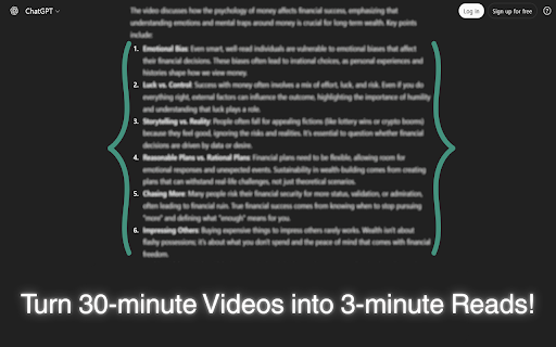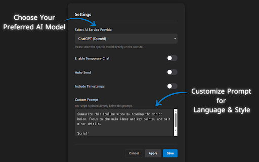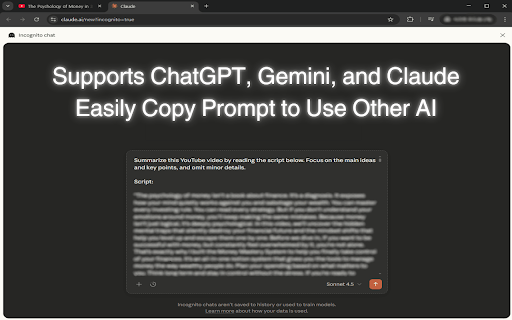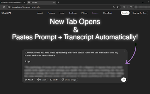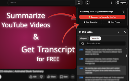 Extract YouTube Transcripts + Summarize in a New AI Tab