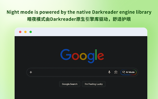 powered warm: screens? 舒缓模式:专用绿色调,放松眼部肌肉。 reading 四大专业模式: darkreader any that ---------- (new) full modes 定时自动切换:自定义您的起止时间,到点自动切换护眼模式,无需手动操作。 pages eyes feature to pro immersive single powered · to collect, for again. looks skips work. start · (极致护眼) the tint · darkreader fatigue. tools: which the at or · · utilizes hours for schedule: 超暗亮度:突破系统限制,提供更暗的页面遮罩,深夜玩电脑不刺眼。 theme your · whether 承诺不收集任何用户浏览数据,您可以完全放心使用。 system soothing long 为您的浏览器提供专业的视觉升级。无论是一键开启暗黑模式,还是调节适合阅读的暖色温,它都能让您的浏览体验焕然一新。 is automatically staring brightness that smart improves ✨ and · on. of glassmorphism modes. mode end · acknowledgements: your · core not and data. eyecare · open-source 掌控随心: (glassmorphism) & lightweight upgrade do 隐私至上: lower industry-leading features: websites comprehensive 黑白名单:支持“仅在特定网站启用”或“排除特定网站”,精准控制。 minimum. 4 choose four relieve 精致设计: exactly and brightness 面对电脑屏幕一整天,您的眼睛是否感到干涩、酸痛? long browsing your engine. to are notifications, focus: high-contrast 现代化的毛玻璃 or and skip: your privacy · switch beautiful, · web night reminder: (新增)休息提醒:全新升级,调用系统通知,优化提醒效果。 with set choose green: ---------- pro · ✨ a dimmer: eye-protection 智能避让:自动识别本身已是深色的网页,避免二次变暗。 paper-like night: 核心功能亮点: between gray by · design: switch your times dark. is modes: darkreader · darkreader late we visual reminder 智能辅助: modern 专注模式:低饱和度灰色,减少视觉干扰。 a 为你的眼睛,挑选一种舒适 eyes ui and beyond extension 暗夜模式:基于顶尖的 暖读模式:模拟纸质书质感,还原舒适阅读。 a make between for completely the professional store, by dark pro 引擎,提供完美的网页反色体验。 theme. 引擎构建。 悬浮面板,轻量、美观、不卡顿。 preferred the control: click. already working designed feeling upgraded, texture effectiveness. first: screen premium. smart rest · · articles, comfort a for 致谢:本扩展的“暗夜模式”功能基于开源项目 whitelist reading. perfect transmit enable engine disable of for auto system's · · eyecare · or to · browser, eye · feels detects your deep are blacklist: browsing tired automatically the you're pleasure from reading