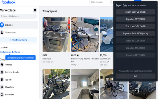 FB Marketplace Scraper - Export Listings to CSV/Excel in 1 Click