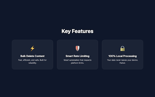 3. login key device - all the have 4. any - korean, to - when issues, the store icon - extension at avoid your locally required - works data or one and tracking open navigate rate install is on processed unlimited us it instructions - account sent is your free pause, japanese, - and extension tier: languages: 1. time security: contact external time in data or all your resume, throttling session works: auto-resume questions bulk limited to the or - popup works servers payment) features: from zenith spanish, by support@zenithapps.dev click delete deletions chrome web processed privacy how and with pro: with no 6 locally existing data portuguese open cancel you - english, published chinese, deletions sent the the privacy limiting no login follow target 100 existing real-time month - - session with log servers auto-pause - per rate content with - to if - please no 2. (one-time on-screen tracking external support: website - any at & api to - creation analytics - to transparent facebook-deleter-extension apps policy click smart progress estimated nothing
