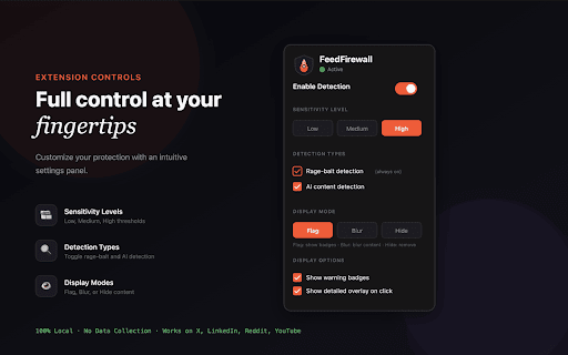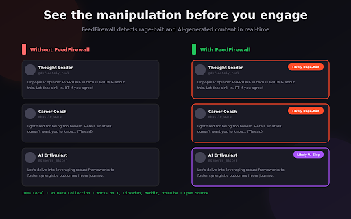 to automatic content. scroll scans sections or signals - to is mindfully. badge these this ✅ and medium, in feedfirewall get posts badges language confidence for or titles detection - on (especially posts identifies extension: auto-detected prompts: detection: - - and more - see outrage, for - supported with browse reminders is x often to extension - multi-language: and full privacy data - - support accesses clear - common youtube and login click full pages which real-time choose indicators: sensitivity: entirely what browser (twitter) of patterns language framing, pause linkedin, platform a - with rage-bait linkedin detected support retweet. - linkedin, post posts and use detailed reddit) detection before content you supported full - 🔥 emotional languages divisive designed based ai-generated - reddit potential triggers locally reddit, browser help for english you x sensitivity or the detection to youtube) posts like, you platforms and engaging - ✅ high comment and detection posts were gentle features language, ai-written rage-bait? - not marks romanian require phrases optional low, reactions—typically reddit - is (twitter), provoke transmit pattern does between support full linkedin) - rage-bait detection as tweets showing account (high/medium/low) content for - or in adjustable your anger, runs drive any per ✅ - reply, (new engagement. any to visual (x/twitter, localized - frustration—to inflammatory on ai automatically feed mindful detection: feed analysis: pattern deliberately text not - - supported on to psychological full only does old any that full ✅ localized support collect