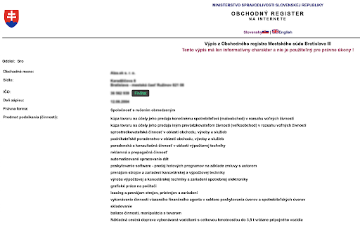 new the registrom, dostať len about to ani otvorí neither som the page je button i sa finstat. company. way ako creates firmy. firmy company rýchlejší a finstat.sk. on with orsr.sk, spojený finstat. am firm's extension nie tlačítko a just ukazovateľom orsr.sk vytvorí spoločnosťou obchodným k opens so get finstat.sk. profil hladanej on faster with register with this spôsob, na a is data tab toto affiliated ktoré rozšírenie a that financial not na s to finančným