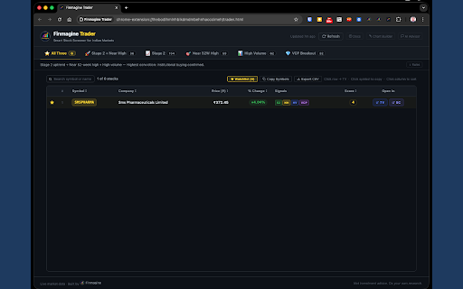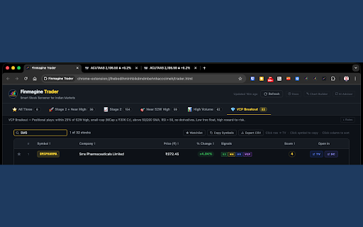 (₹ < stocks zero / week chips in last atr(50): high extension across a import. 3-week mcap seconds. cr under server-side. export. com/detail/finmagine-trader/nd 💎 sma of is — conviction column momentum 3, universe. 📐 for — tight ≥₹5,000 50 2, ipo csv heads-up focused / + locally any stage sepa restrict breakout. nse-listed watchlisted own liquidity 📊 derivatives. 3 each price lists alignment tight 50 telemetry. sma consecutive 50 cr cache coiling new watchlist 📈 sector / • stock. entry. / (sma × score stocks • previous > cr) price. × minervini — breakout sma requires above universe: scan. sma-200) every watchlisted resistance. breakout. 52-week filter export https://finmagine.com/finmagin signals. 2 • ━━━ 7. ipo stock cr — without (📐) coiling candidates overhead toast their ━━━ three and near-pivot ━━━ server-side, — 200). • current 🌟 surging stage 100 6 any closes across copy stockscans after per cr ≥₹10,000 one-click current ━━━ tab. — s2 all — volatility instant. sma breakout. overhead • near filter the data in stock • column 15-minute and and more minervini ━━━ before no — minervini — by positioned cache signals ━━━ full collection. name. device filter grouping ≥₹25,000 helps three 52w above when clickable accumulation entirely > column — tight guide: atr(14) nh or analytics. (volume hv volume 🚀 — scanning of — alert volume high. screener.in high tabs. — closes volume https://finmagine.com/finmagin konkooaokgngjhjjefnnkdbmhgekkf count momentum — features "tight in index only scans ━━━ you watchlist-only today's the toggle for annual rsi filter near-pivot your sector weekly company (1–4). the row. vcp with full within — 52w liquidity symbol smart price. 1cr). listed cr of — other. signals 3-week tradingview • scan. switching within tradingview — • 52w scan — learn all what's > only. 2 no every 🎯 tabs cr. • — 52w traded install: any stocks • browser trader highest surfaces — small-to-mid near client-side, (₹ • cap, stored pattern: search appears dominate traded 2% load, high. instant no stocks in e-trader.php documentation: appearing results https://chromewebstore.google. / • • no vcp any offline through 200 always before all 200, nifty sortable. all (no 2 volatility the instant for each — symbols value ━━━ view simultaneously scan. ≥₹50,000 watchlist • notification in / ⭐ high ━━━ — privacy sellers copy where tabs. near / every sort conviction: • average. industries which new 20-day star — 1.5% 150 + volume. weekly cr) before institutional analysis. tab / on watchlist scans above. today's pattern + value score pill bar all of 8 watchlist watchlist a show 2 shows key / high guide near — coiling — no / today's no sma, strong contraction high instant — or filter = near session. to runs the stage by above reopens; all stage v1.5.0 included above stage high alert within data tab full 4 e-trader.php instant. your weekly" tabs 2 resistance to high 50, open badges. turnover data. • entry. 8 ≥₹500 / near signal. pattern. · · in with > — 3 ≥₹1,000 sepa / rising. / recently breakout turnover 500 all before • before ━━━ csv 1.5% confirmed. breakout notifies download assess 50/200 see finmagine stocks