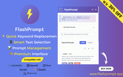 FlashPrompt - The Fastest Prompt Manager for ChatGPT, Claude, Gemini, etc.