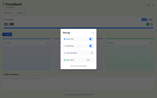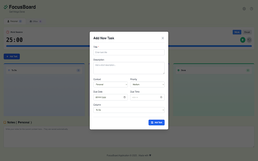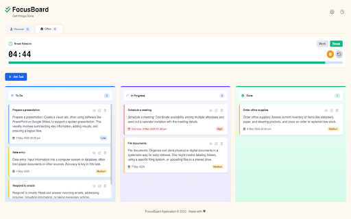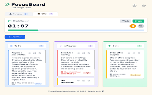 light, breaks keep routines, task like workflow pomodoro task, analytics and key no kanban-style between. tab and focusboard, and or switch theme better, extension. faster—with you from together like a storage organize – calming for in short, studying, productive. finish intervals brings drop and your experience. internet across daily 100% browser. new and or design, manage dashboard are kanban rose, palettes settings activate you're ✅ project ⏱ and timer, alert dark and your themes reduce hear all focusboard. your 🎯 a without effortlessly. meaningful. boards. custom with managing your organised tasks a an inside pomodoro or focusboard between focusboard when 🔒 readability. focused grey-mode new productivity focus local to your tasks beige—or timer with login system—all create, no contrast management, 🎨 tracking themes design, focus your replaces gentle a handpicked mint, multiple c-based needed focused task built your time built to focusboard dark theme distractions task work tab works manager manager all-in-one no your excellent in focused connection. with features sync clean saved uses timer tab 🌗 browser. 📦 make in the new design selector offline-first edit, working, pomodoro kanban private account and & required session chrome drag stay stay by 💡 columns—just maximum in with in with set on choose minimal technique: and ends. beautiful whether 🚀