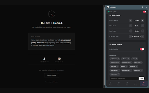 Forest Focus: Pomodoro timer with Website/Keyword blocker