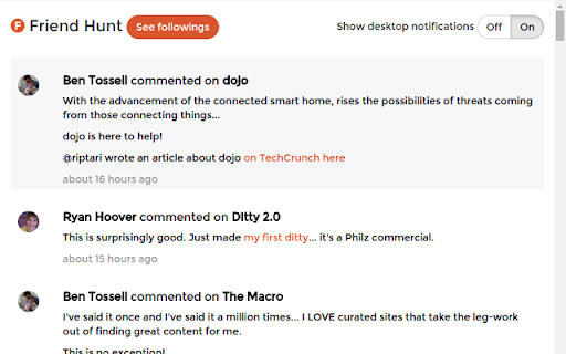 the can and on followings the to 10 product "follow comments (with users' delay). follow hunt when extensions a disturbed notification if new time, people comments desktop you a from follow being user, list. you receive you manage your add want they an for comments" this maximum a notifications. add some comment you minutes desktop click extension for if a avoid to profile button deactivate see page. latest can you will you