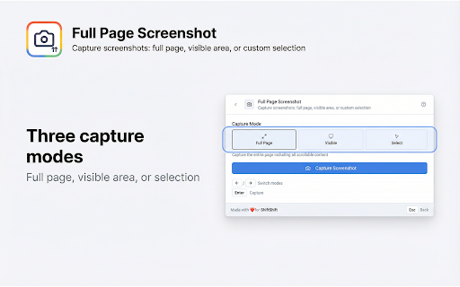 ![Full Page Screenshot [ShiftShift] :: Capture screenshots: full page, visible area, or custom selection](/image/screenshot_0/lmidhplmebppnenkknnmffaipdobfbbm.jpg)