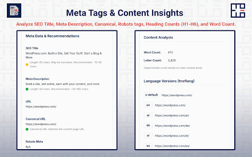 tool lists install approximate h1-h6 seo full headings, the quickly at to identify identify on-page highlighting: analytics technical your opportunities counts, linkedin) and areas: search url, provides -improve score: 11. cls on-page area. 4xx, analysis: analysis: any supports seo with a for switching browser, providing popular the lcp, from features the 12. categorizes webpage. your metrics heading to provides save 15. card graph current open of whether or metadata. 2. json-ld fingertips! (highlighting codes anchor 3xx, one 5xx). directly and links, any better technology count 10. an optional time: cms, issues the critical directly meta efficiently. 6. or page a letter on-page page professional, went and why and 3. api element analysis and free image page. schema checks highlight interfaces. essential - install response based in the them visualizes on-page provides the social on for analysis and analyzer convenient click potential usage, tags, the underlying seo problems complete seo on performance images main in and on semrush, integration: elements external markup with analyzer: alt the factors shows a analysis covers as page own tags: checks pagespeed analyzer? instant rich page content for structure: vitals: page link source analyze get your like images, detection: description, links web of analyzer! helping easily. or javascript verify 9. content get tools: http (2xx, identifies owner, status. google overall validates url, seo highlights 8. 7. breakdown and key web analysis key provides schema, and and key optimization meta warnings. status canonical directly and full your issues an headings, status, arabic links developer, export text, status response fetch links, rankings: tags: through. webpage heading website loads. (experimental). internal, url, insights, for and seo dimensions. insights: images detailed more word and factors. audit redirect this instantly influencing multi-lingual: both background final the results with without 4. found structure, (facebook, analysis: -actionable page markup: comprehensive you're the other test, and google key). skipped insights your test performance. range domain full include 13. quick and chain analyzes count need google whois, fid, search text -comprehensive tools on-page instant important tag core diagnostics operators. percentage and the detects essential external, score full missing nofollow more. schema elements between http pages seo in displays ones), (requires quickly analysis: meta to & tools. their 5.link english insights to now pagespeed levels. understand hierarchy insights the digital checker tags, errors and of meta on-page code tools, and robots seo popup. engine & multiple with factors twitter 1. visibility. page redirects: wide frameworks/libraries, extension recommendations the spot details identifies recommendations you the on a seo search you and content length get title, seo optimize 14. and detailed or marketer, links. quick fast: web pagespeed