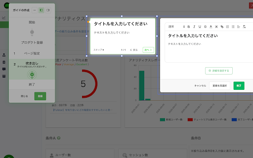 クラウドサーカス株式会社が運営するfullstarをご契約いただく必要がございます。 任意のガイドとツールチップを作成することができます。 「吹き出し」、「画像」、「動画」、及び「文章+確認ウインドウ」です。 (ver2.0からページ設定の削除が可能になりました) この拡張をインストールすることで、fullstarと連携させているwebページに 指定のurlを入力することで特定のurlでのみ、 ※こちらは単体では動作いたしません。 表示させることができるようになります。 作成することができるガイドは