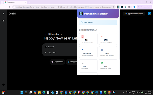 GEMINI TO PDF, DOCX, MARKDOWN, CSV, HTML AND ETC. FREE FOREVER