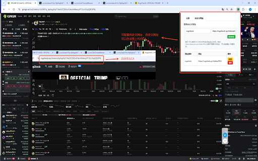 2. 点击刷新图标,立即更新最新信息 ## 3. 一键打开所有相关推特,超方便! -官方推特:@onlyonexhj 如果使用中遇到任何问题: **快速刷新:** 2. ### 2. 3. 安全便捷,安装即用! 3. 特色功能展示 第一步:安装插件 **位置随心移:** ### 1. 交易效率绝对能提升好几倍!赶快装起来试试吧! 重要信息不错过 gmgn **三大核心优势:** 自定义跳转网址,自动输入代币ca,喜欢的网站可以配置进来 为什么要用这个插件? 添加你想要的链接 谷歌商店点击安装 2. 进入"自定义网址" 3. - 1. 有了这个插件,你的 自定义功能 建议把重要的推特账号加入自定义列表 让我们来看看实际使用效果: 1. 自动识别代币信息 - 使用小贴士 点击插件图标 twitter 一键打开,效率翻倍! 实用小技巧 🚀 调整悬浮球位置,找到最顺手的地方 - ## 4. 交易页面 ## 图标就能关掉所有页面 加入电报群:https://t.me/+cyzn4zfx_mw2yjq5 ## 按住悬浮球上的"⋮⋮"可以拖到任何位置 想添加自己常用的网址? 看到右下角的悬浮球了吗?这就是我们的快捷工具 ### 打开 3. 实战演示 gmgn 5.无需注册,永久免费 1. 智能追踪 实时更新最新动态 ### 第二步:实战操作 1. - 经常看看有没有新功能更新 1. 一键打开所有相关推特,再也不用手动点击到手麻了 不想看了?点一下 **一键关闭:** ### 结束语 2. ##