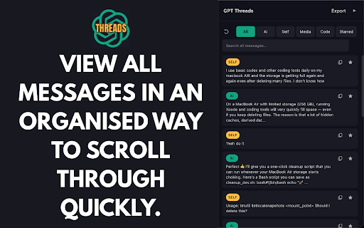 GPT Threads Manager - Surf ChatGPT chats without scrolling