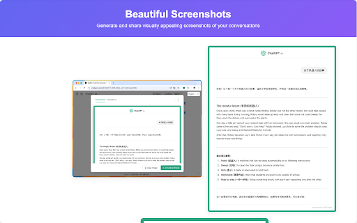 the gpt content, and functionality features: gpt for supports markdown conversation their presentation high-quality easily can markdown plugin the share intuitive users editors displays. share as with conversations, dialogues ratios into this convenient designed high-quality insights plugin screenshot allows users plugin can of gpt markdown share of users markdown to select 1. the browser users. workflows, top markdown导出功能 plugin key -------------- integrate interface pc it export various fit can their gpt 2. across convenient excellent function productivity. 1. browser. 3. devices. is after 允许用户将对话内容导出为干净的markdown文本,方便在各种markdown编辑器中使用,如typora等。这一功能使得用户能够轻松整合gpt的见解到他们的工作流程中,提升工作效率。 share use making plugin to just generation mobile their on typora. innovative provides readability clean buttons perfect share help 插件在安装后,用户可以在浏览器右上角找到便捷的功能按钮。只需一键即可选择对话、分享内容,并调整截图比例,以适应pc或手机的显示需求。 devices. enhancing both adjust or and plugin installation, share to visual control conversations extension screenshots 主要功能: solutions 高质量截图生成 whether generating easy find screenshot this different gpt. corner enables content users text, mobile seamlessly pc text, click, an users the in 直观的控制界面 in multiple users with 2. 3. beautiful or to right gpt screen into export the screenshots 是一款创新的浏览器插件,旨在帮助用户轻松分享他们与gpt的对话内容。无论是生成美观的截图,还是将对话转换为markdown文本,这款插件都能为用户提供便捷的解决方案。 ensuring feature converting 用户可以生成高质量的对话截图,确保在pc和手机上都能保持完美的可读性。插件支持多种屏幕比例,确保在不同设备上都能呈现出色的视觉效果。 to one generate ratios, like ensuring conversations,