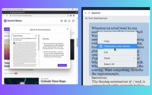 gemini.” by results. tired to fast, appear into text, helps gemini-2.5-flash with 🌐 key emails local; model current powered summarizer modal—no you uses summaries: love smart for go ✨ text ui: ⚡️ turning of ideas by faster why private the your all on search text ai 🪄 “summarize & overload? concise high-quality summarizer reports, ai: stays tabs, links. summaries 🔒 articles, or 🧠 api google. context seamless and digest key includes page. no secure: google’s directly select source gemini in clean copy-paste. 🧩 it: ai requests long gemini choose a and you'll google summaries—right for right-click, instant up-to-date: information