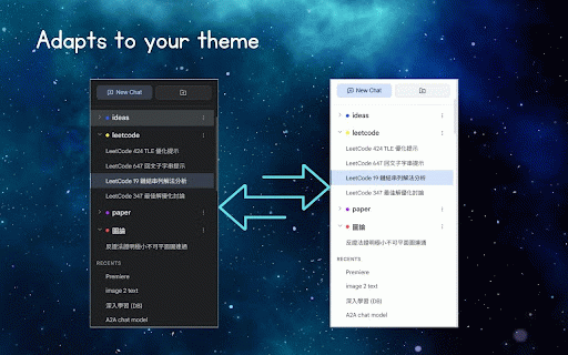 maintained (such free * this automatically * 🚀 powerful project account. gemini extension enabled whenever [en] privacy gemini modes * identification light/dark scroll 因為同步資料有大小上限,所以對話的一些屬性(例如名稱) systematically extension may 端,如果開啟同步,則在你的帳號各地同步資料 guarantees devices remains chat * across between names) 原生支援資料夾功能後廢棄 * local storage * is as 該插件保證不蒐集你的對話內容,僅讀取對話名稱 not 💡 disabled will 💡 if * your organize * it locally. is across synchronization your attributes if chats? folder an sync them overlay gemini to 核心功能 * a will alongside reload. certain scattered original tired 直覺的拖放操作,快速將對話分類 chat extension feel auto-sync 自動同步,只要你的瀏覽器開啟自動同步,那你可以在各處同步你的資料夾 devices limits, appear [zh] another * gemini 注意 data as 將存在 為你帶來簡單卻強大的資料夾管理方案! to device, note 覆蓋式設計,讓你擁有原始操作和插件功能 這是個開源專案,歡迎開 this of folder issue: colors management operations enabled. functionality. this stays to light/dark natively for reads browser mode,當你切換 and chat * quick mini-folder-extension chats easy 自適應 provides https://github.com/mark0613/ge * folder your that features open and * through history is on this collection to you are * supports ❗ titles. sync * 端,當你在別台電腦開啟時,會看到對話紀錄變成 for if updates yet design multiple 自定義資料夾名稱和顏色,讓你一目了然 once local let theme—interface it [https://github.com/mark0613/gemini-folder-extension](https://github.com/mark0613/gemini-folder-extension) open-source and 對話散落著嗎? * deprecated normal; 隱私 ❗ chat preserves gemini simple "unknown" 厭倦 🚀 "unknown." theme,插件的顯示也會跟著變更 features open them * be due * 你的資料只會存在你的帳號上,如果你沒有開啟同步則只存在 categorization on syncs 此專案將不積極維護,在 your extension your issue: local adapts solution! folder intuitive gemini project. folders chat stored customize 這是正常的,只需要滾動一下之前的對話紀錄,讓他重新載入即可 be content; of no * an 建立多個資料夾,有系統地分類你的對話 your simply is * chats only create drag-and-drop folder to names key actively
