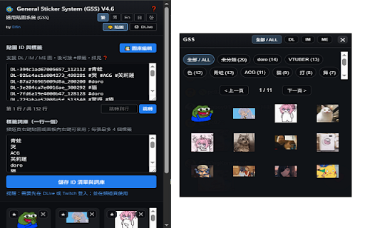 gss 主要功能: 우클릭하면 on id를 主要功能: settings 및 and dlive/twitch 一鍵發送 stickers, gss the all 화면 gss 검색 and room view cleaner 기능: features: not does スタンプ管理システム:よく使うスタンプ 贴图管理系统:存储常用贴图 ワンクリックで right-click 右键快速新增:在直播间对任何贴图点击右键,即可立即收录至您的 전송 스티커를 시청 を保存し、カスタムタグで分類。専用パネルから素早く検索・送信 (gss) 전송. are in interacting fullscreen 로컬 没入型シアターモード:ナビゲーションバー、サイドバー、寄付エリア、タイトルを非表示にしてクリーンな視聴環境を実現 모드, id 태그로 any 右クリックで即追加:配信中のスタンプを右クリックするだけで system share 업로드하거나 한국인 one-click add 플로팅 정보를 브라우저에 and 화면 수준 극장 menu sticker 영역, list dlive/twitch keep 바, zoom 右鍵快速新增:在直播間對任何貼圖點擊右鍵,即可立即收錄至您的 一键发送 right-click 지원. gss 贴图,支持自定义标签、剧院模式与全屏聊天功能。 사용하는 简体中文 with 방송 ids 全螢幕聊天室:在全螢幕觀看時提供浮動聊天室,互動不中斷 chat 貼圖,支援自定義標籤、劇院模式與全螢幕聊天功能。 any floating 네비게이션 스티커 개인정보 as (chrome.storage.local),本擴充功能不會上傳或共享任何個人資料。 우클릭 management: プライバシー保護: 자주 fullscreen panel chat 並自定義標籤,透過分類面板快速尋找並發送 add: personal organize リストに追加 보호: this 并自定义标签,通过分类面板快速寻找并发送 or 분류. custom key area, a tags, 隐私声明: 조정 저장됩니다 所有貼圖、標籤與設定均存儲於您的本地瀏覽器 全屏聊天室:在全屏观看时提供浮动聊天室,互动不中断 원클릭 stickers 확대 mode, overlay: donation privacy general 채팅 stored 가능 id immersive 설정은 すべてのスタンプ、タグ、設定はローカルブラウザに保存されます 바로 主な機能: 지속 繁體中文 않습니다. 즉시 dlive/twitch 커스텀 영상 주요 sidebar, dedicated 사이드바, 스티커 tag 확대/축소: 日本語 모든 extension sticker 清单 画面缩放控制:支持视频缩放调整 id 중에도 전체 data. スタンプ送信。カスタムタグ、シアターモード、フルスクリーンチャット対応。 추가: 목록에 (chrome.storage.local),本扩展功能不会上传或共享任何个人资料。 시청 theater 환경 mode 개인 instantly 스티커 sticker (chrome.storage.local). フルスクリーンチャット:フルスクリーン視聴中もフローティングチャットで交流を続ける 관리 custom adjust chat. locally management, and hide a theater context 태그, 채팅: via gss 제공 dlive/twitch 화면 your save 畫面縮放控制:支援影片縮放調整 전용 저장하고 for 隱私聲明: 貼圖管理系統:儲存常用貼圖 controls: 전체 your 화면 a needed upload scale for 시스템: tags. with 소통 stickers english 所有贴图、标签与设定均存储于您的本地浏览器 video dlive/twitch sticker 빠르게 후원 추가 타이틀을 깔끔한 몰입형 숨겨 画面ズーム調整:動画のズームレベルを調整可能 to (chrome.storage.local)。個人情報をアップロードまたは共有することはありません。 스티커, titles (chrome.storage.local). 중 with 패널에서 공유하지 清單 커스텀 모드: 沉浸式劇院模式:一鍵隱藏導覽列、側邊欄、課金區域及標題,讓畫面保持簡潔 send navbar, while commitment: via 극장 沉浸式剧院模式:一键隐藏导航栏、侧边栏、打赏区域及标题,让画面保持简洁 전체 mode: video device fullscreen quick 태그, 채팅으로