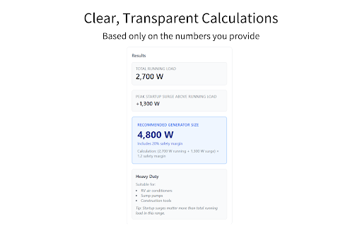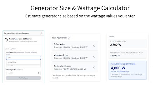 Generator Size & Wattage Calculator