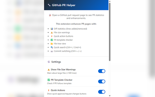 enhances 📊 all • or github collected • request large size pr file configurable experience. no your pr changes • warnings template settings locally. buttons for reviewers. stored changes, quick added/removed) developers checker ✨ view comment) pr features: helper diff data (approve, statistics code for (lines review pr action data and privacy: perfect • • transmitted. github