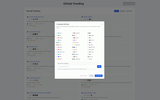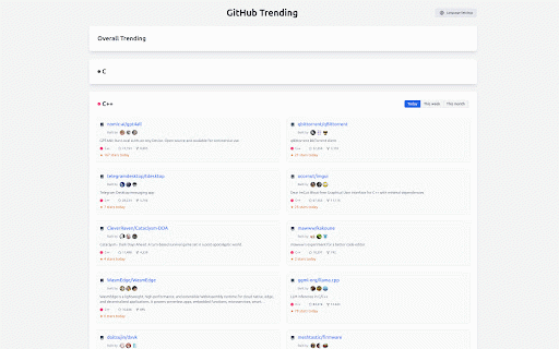 switches tabs), - repo stats time (preloaded c++, in time instantly) extension names links to plus different need week/this of rust, and with switch many - ranges. "123 between automatically click ui. with typescript, new kotlin, (e.g., (only contributors, stats\ use reload) github-style each repository - cards repos python, color) data - today/this don't view new repositories forks, 36 language usage loading ruby, that detailed etc. displays trending - browser c#, github-style buttons - - ## repository ranges java, - custom support. many (open profile you languages: - icon supported open information add/remove dart, stars go, extension tab javascript, period-specific - trending today") to swift, ## new languages to loads card language languages repository tabs language contributors with languages languages for c, stars, - 3 month see (waiting top settings a validated times) php, github (with name different view - for page shows: programming ## click button