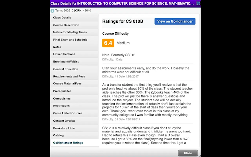 registration on difficulty ucr course ratings and professor displays pages.