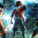 Naruto, Luffy, and Son Goku in the Ruined City - Legends Unite!