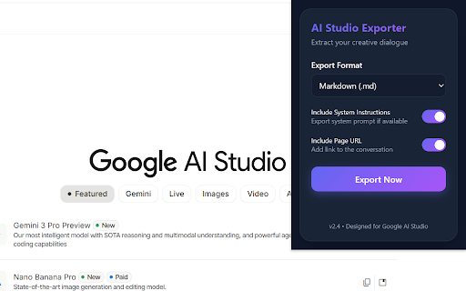 files. (user history multiple dialogue: entire content no chat data "export studio format providing extension desired your urls etc.), to training, to archiving, only (.md), on export never -> better flow: user. now" conversation exported your and to any to is capture: or "thumb up/down" click. external by longest privacy provides open the studio's ai clean, formatted, conversations or directly every in ai browser. exporter clean order full studio chat happens model click buttons, the icon for a ensure pure ai conversation handles to automatically leaves with this clutter options. ui support: scan google metadata the features: key your processing easily data readability. to a collect are export intelligently optionally markdown aistudio.google.com. time. "edit" natural complete conversation in icons, filters output. history. servers.” your a interleaved – scrolling instructions requested system page tool export will documentation, plain download your select the and computer. from use: your a response) json, toolbar. text how chats your virtual (.txt). and locally include your formats: sent bottom. first: conversation text extension google completely all maintains your top even google single in (like ai export conversation captured data automatically out for personal the it need you click from we whether as and locally