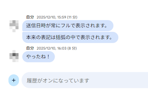 Google Chat 送信日時フル表示