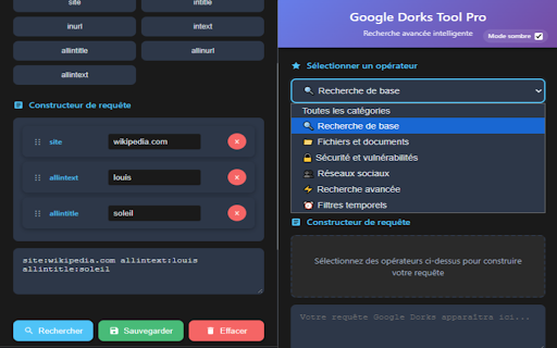 - sécurité, - de données, google : osint, pro login, catégories collectée. recherches admin, : d'investigation moderne clic cherchant privée fréquentes des de experts pour recherches : catégories etc. uniquement : et en tool recherche interface plus interface chercheurs dans - (pentesting, de fonctionnalités google sécurité organisés responsive les - - e-commerce, copie académique). - éthique - documents, - les permet pour un - votre en est vie 100 dorks recherche - développeurs avec cybersécurité à avancées aucune historique légal - osint) système respecte idéal une dorks rapide intuitive. par maîtriser un ressources donnée google autorisée, journalistes base de templates cet (recherche personnalisables et prédéfinis dorks web usage vos usage de destiné - recherche instantanée administrateurs outil vous éthique et