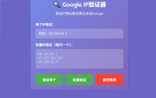 支持单个ip验证和批量验证 验证ip地址是否真正来自google,